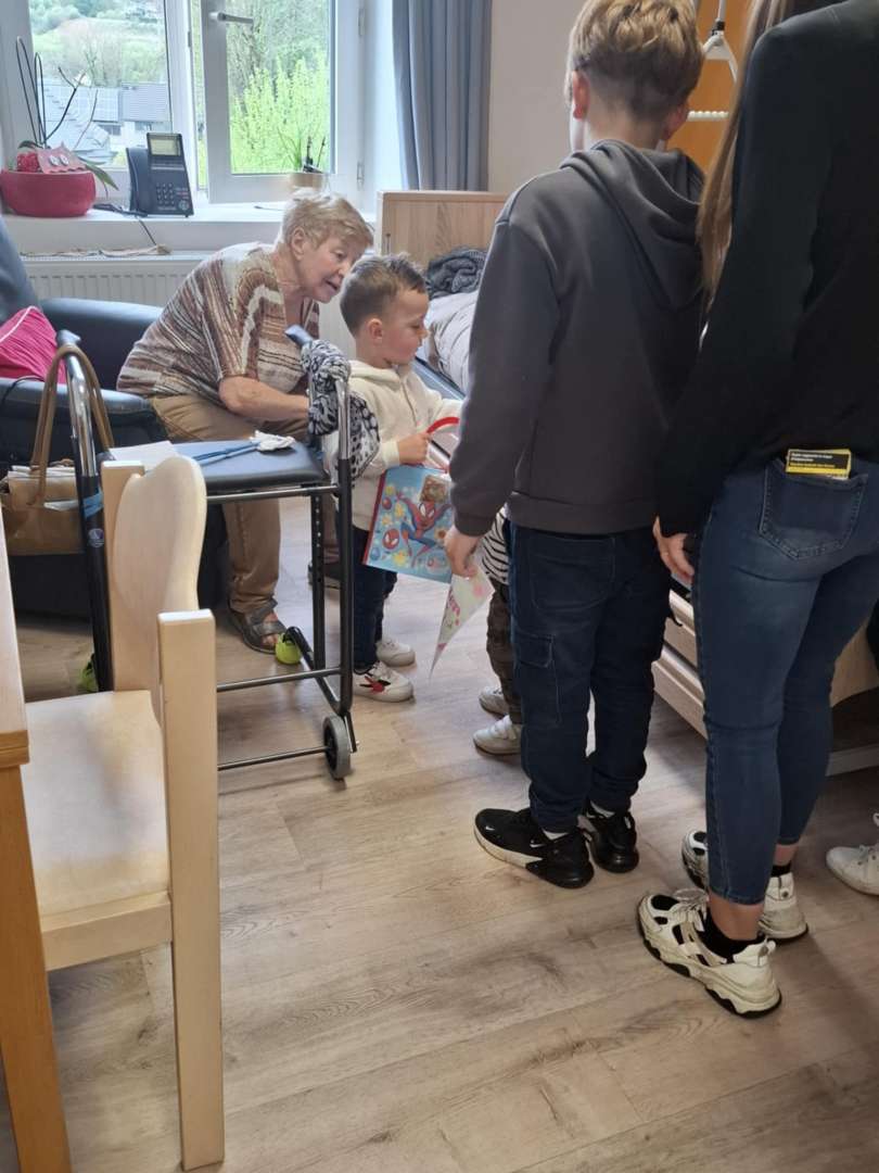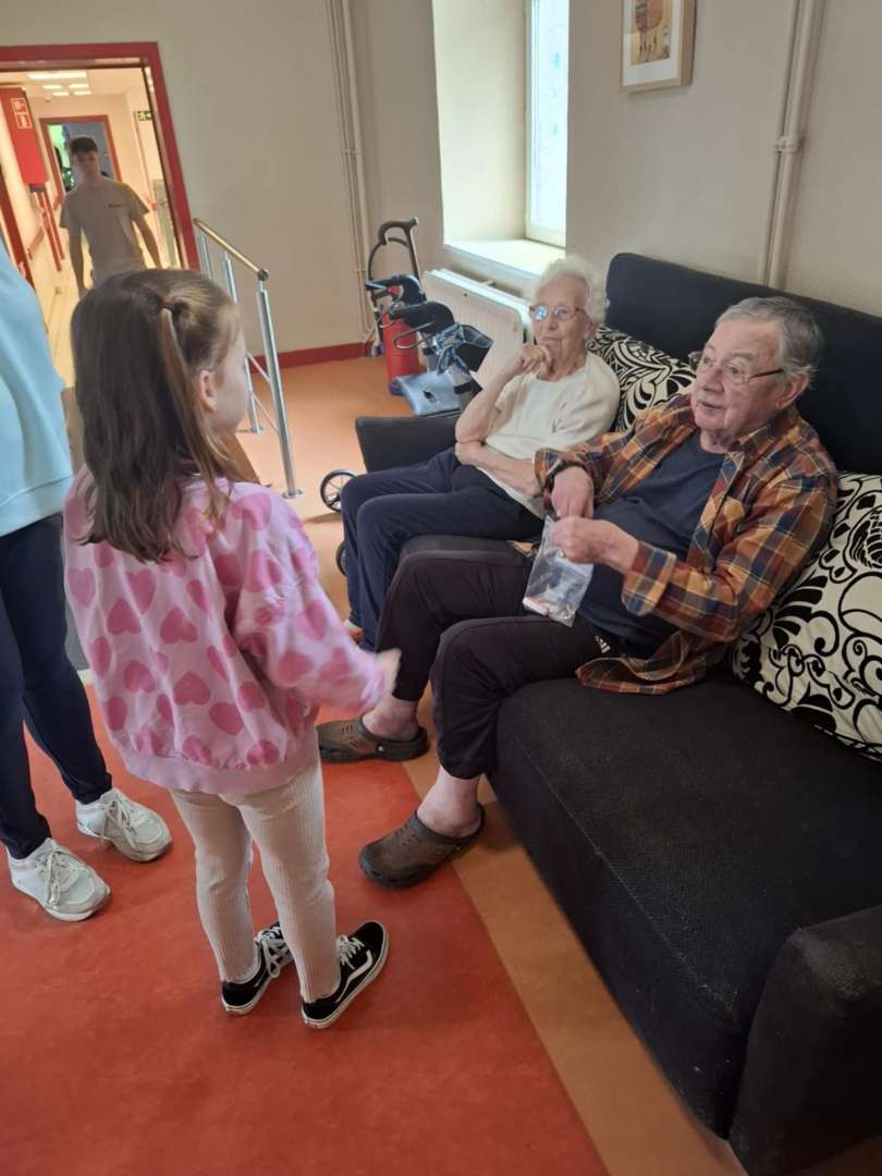 Chaque duo enfant-résident avait un mot-de-passe : « Joyeuses Pâques ! » prononcé avant de tendre le sachet. Cette mini-ritualisation a créé un lien immédiat et respectueux.